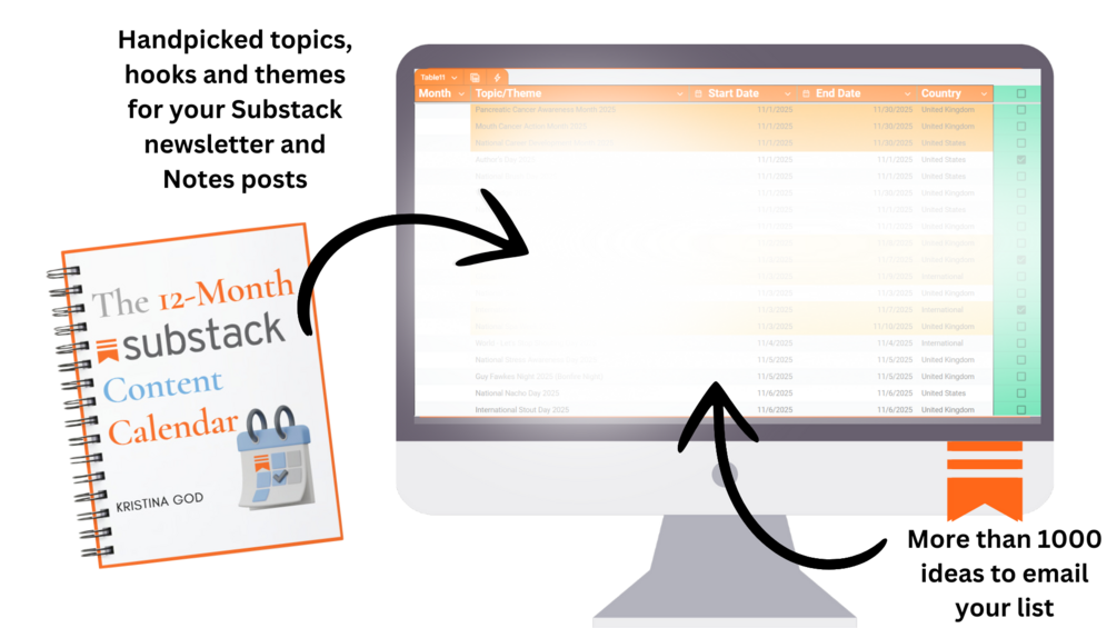 That’s exactly what my 12-Month Substack Content Calendar for 2025 is here to do! 🎉
